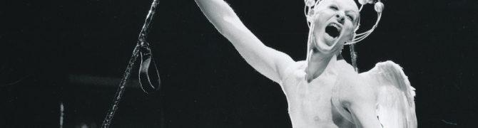The exhibition Seeking and Defining Beauty at UGM Kabinet presents six theatre productions by Tomaž Pandur through the medium of theatre photography and other archival material from the period of his artistic leadership of Drama at the Slovene National Theatre Maribor (1989–1996). The exhibition is built around black-and-white photography of Angelo Božec, which stand as compelling testimony to Pandur’s creative vision, his boundless passion for creating new worlds, and a poetic language uniquely his own, to which he remained faithful until the end of his creative journey. The plays that Pandur staged at the Drama SNG Maribor over a period of seven years pushed the boundaries of theatre, provoking excitement and controversy. Faust (1990), Hamlet (1990), Carmen (1992), La divina commedia: Inferno, Purgatorio and Paradiso (1993), Russian Mission (1994) and Babylon (1996) are productions that have left a profound mark on the theatre of Maribor and Slovenia, placing it on the world theatre map.
